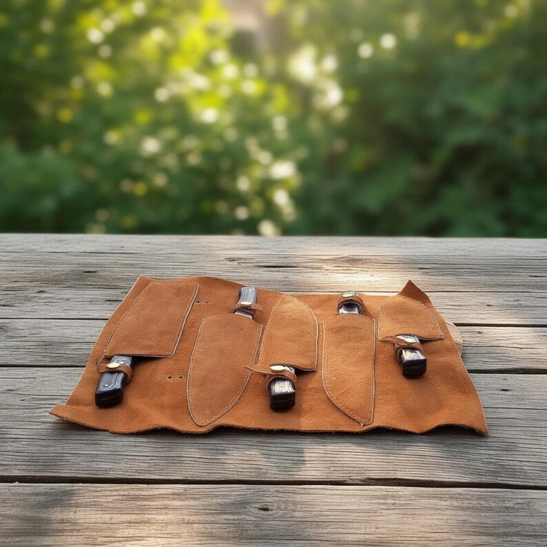 Handmade 5-Piece Damascus Steel Chef Knife Set with Leather Roll Bag